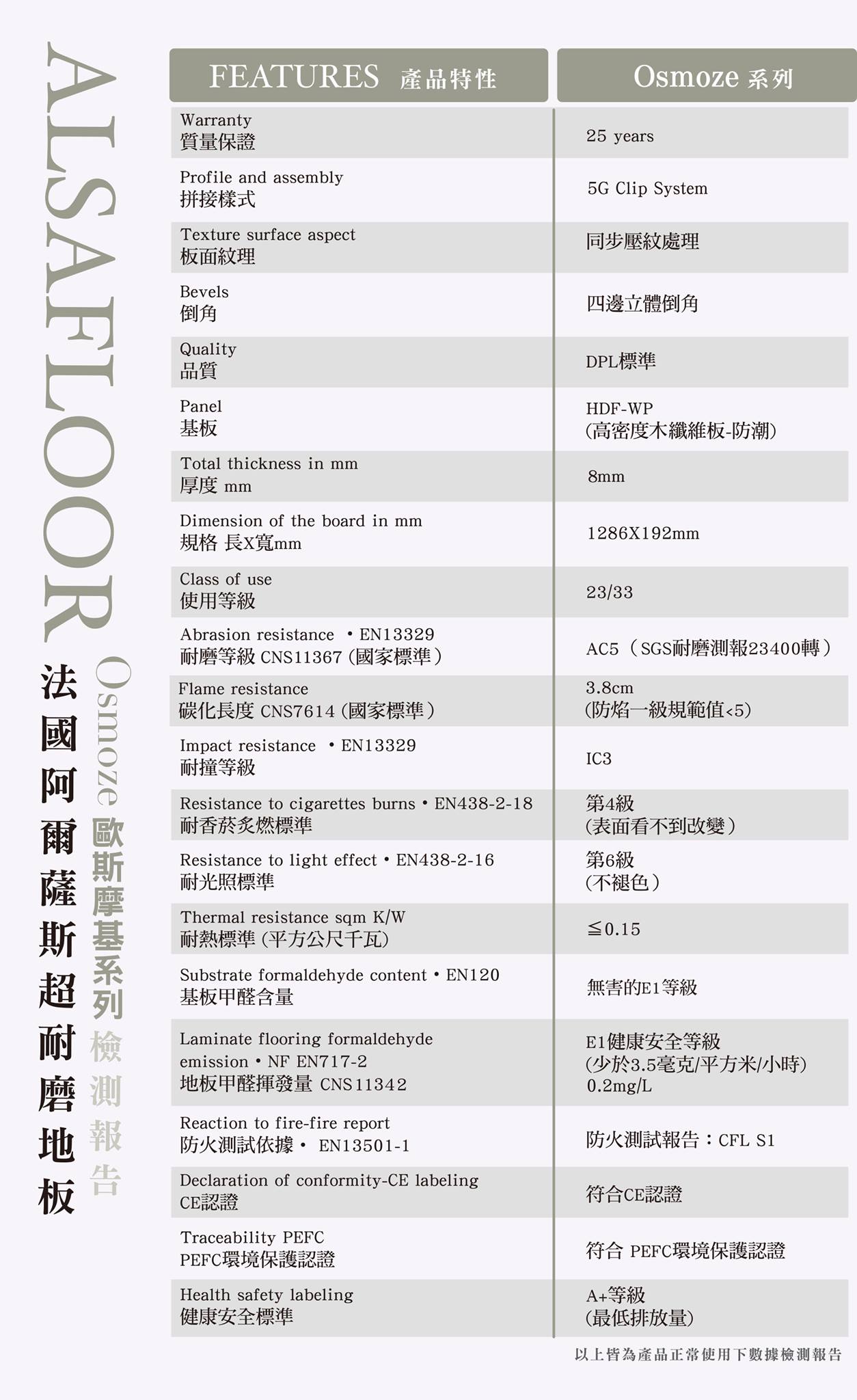 Alsafloor為歐洲法國知名品牌之一,之前介紹的Rococo(WPC)同樣來自法國,Alsafloor特別強調它們的耐磨曾度達到AC5甚致某些系列更達到AC6等級。