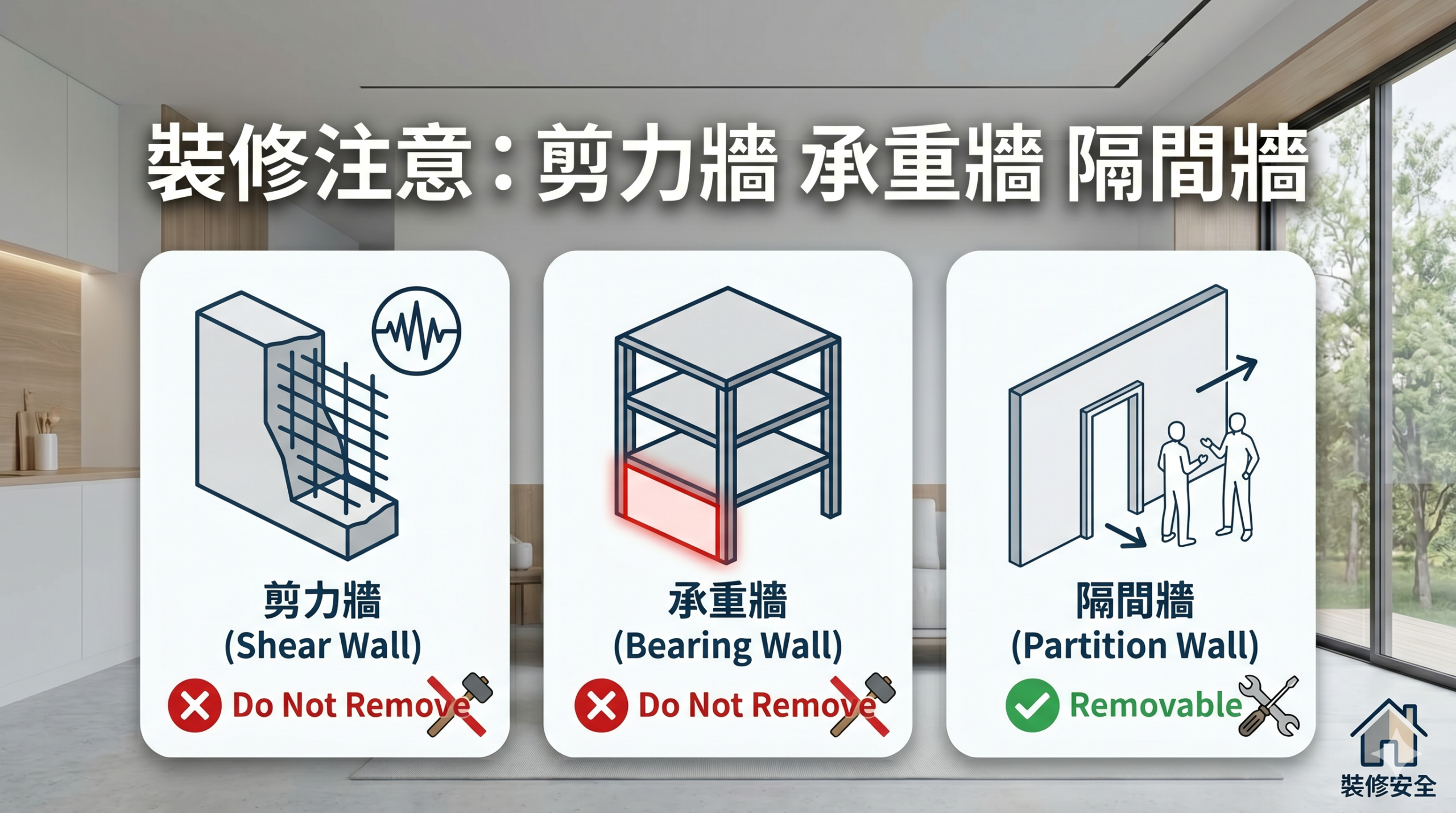 很多人在老屋翻新或室內裝修時,為了追求寬敞的空間感(Open Concept),第一直覺就是「拆牆」。但你知道嗎?有些牆是房子的「骨架」,一旦拆除,可能會導致結構崩塌,甚至在地震來襲時發生危險。