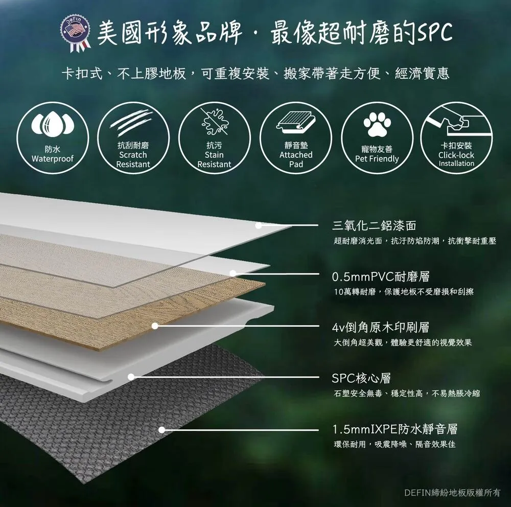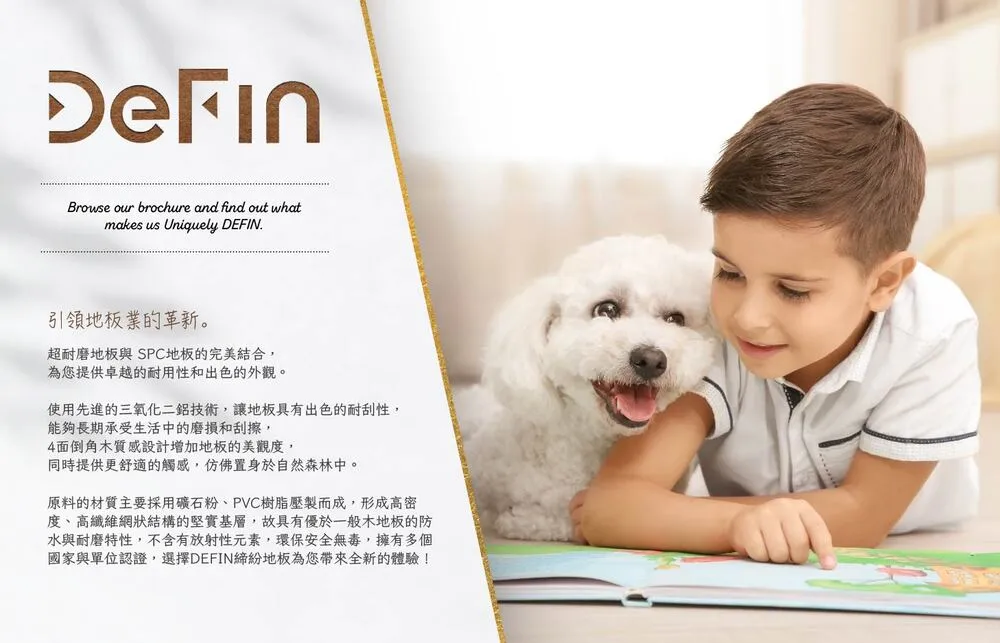 Defin 為一美國行向品牌強調最像超耐的SPC地板,相關資訊非常少且也沒有正式官網。